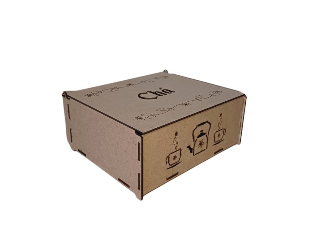 Caixa de chá vazada. Com 6 divisórias.