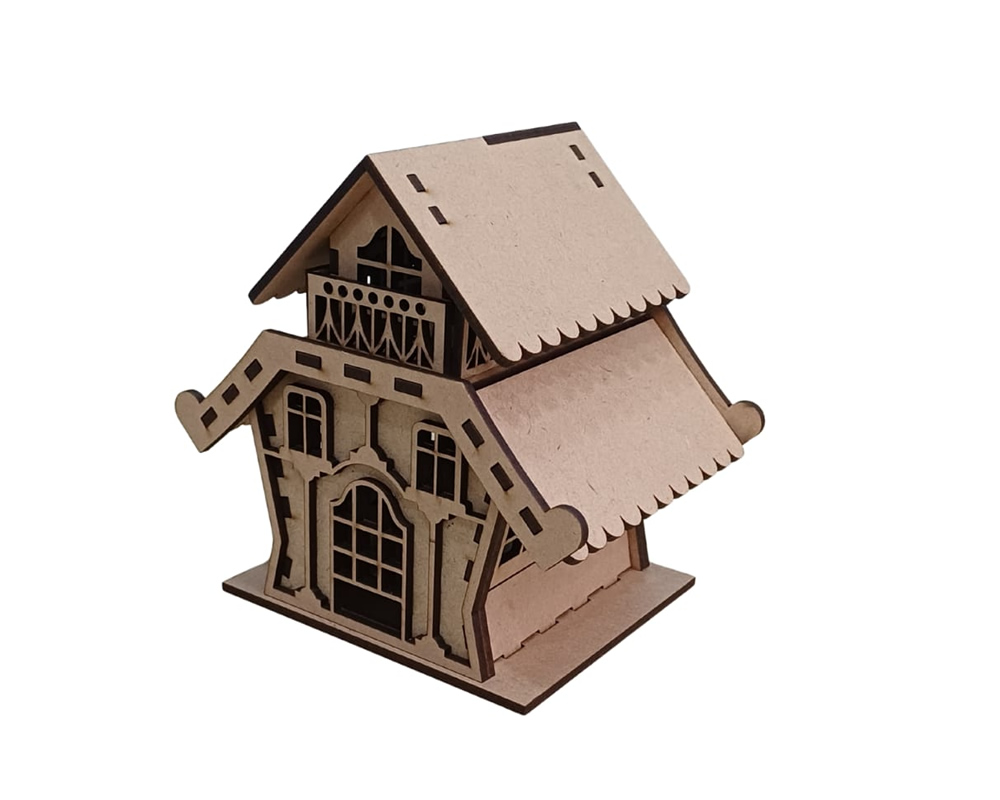 Casinha com telhado removível e com apliques separados.