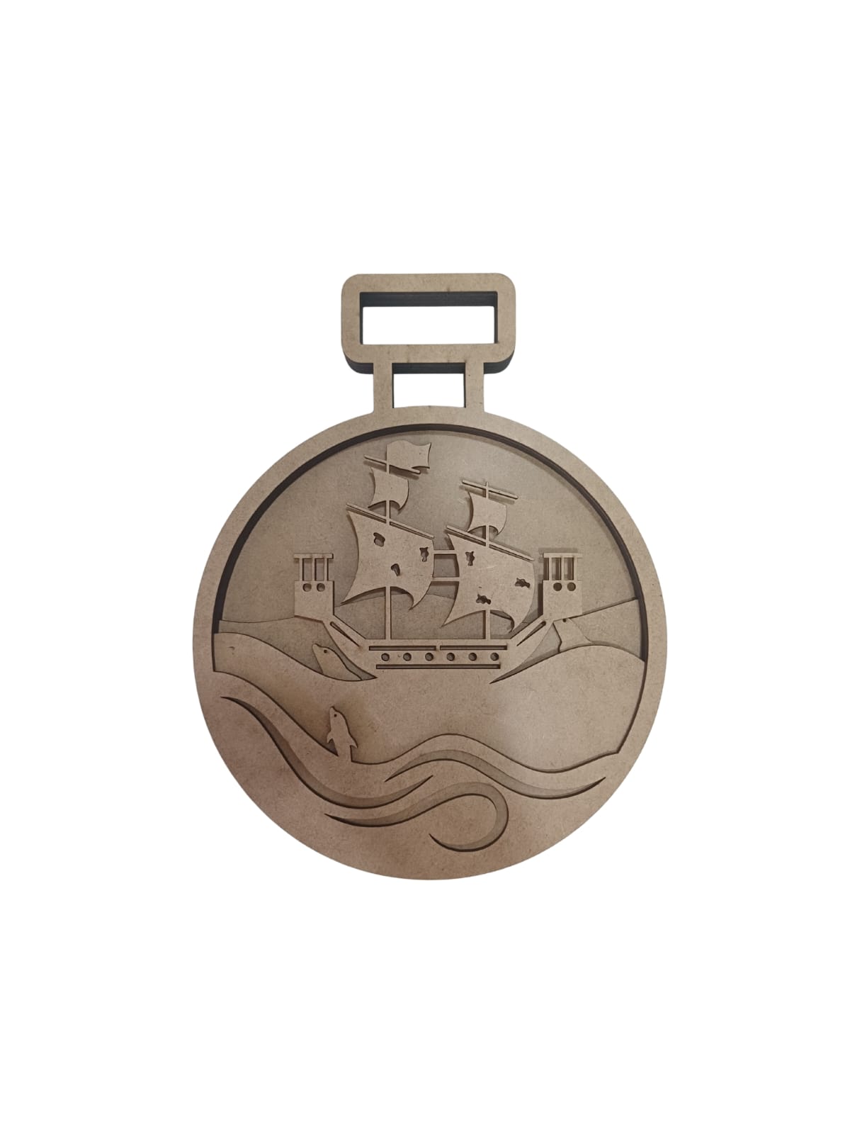 Cenário com efeito 3D de um barco navegando. Feito com placas sobrepostas de MDF3mm.